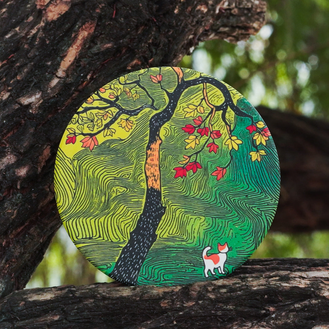 Beautifully crafted calico cat themed wooden coaster for your brewing ritual